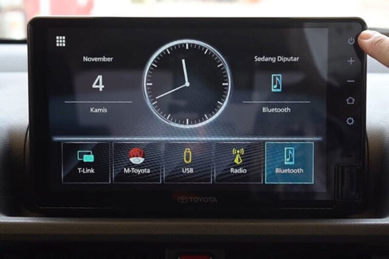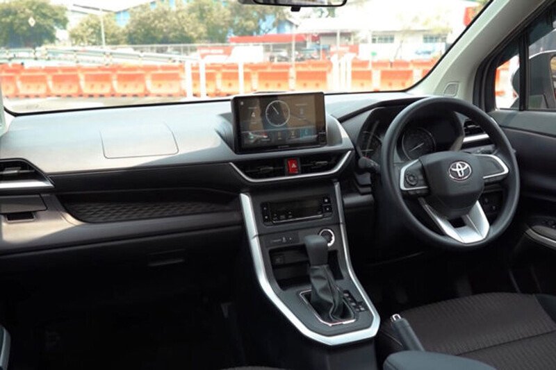 Màn hình thông tin trung tâm của Toyota Avanza được chuyển vị trí trên cửa gió điều hòa. Bên dưới là hệ thống bao gồm các nút bấm chức năng, bàn sạc smartphone không dây, điều chỉnh nhiệt độ và cần số thiết kế mới giống với Toyota Raize.